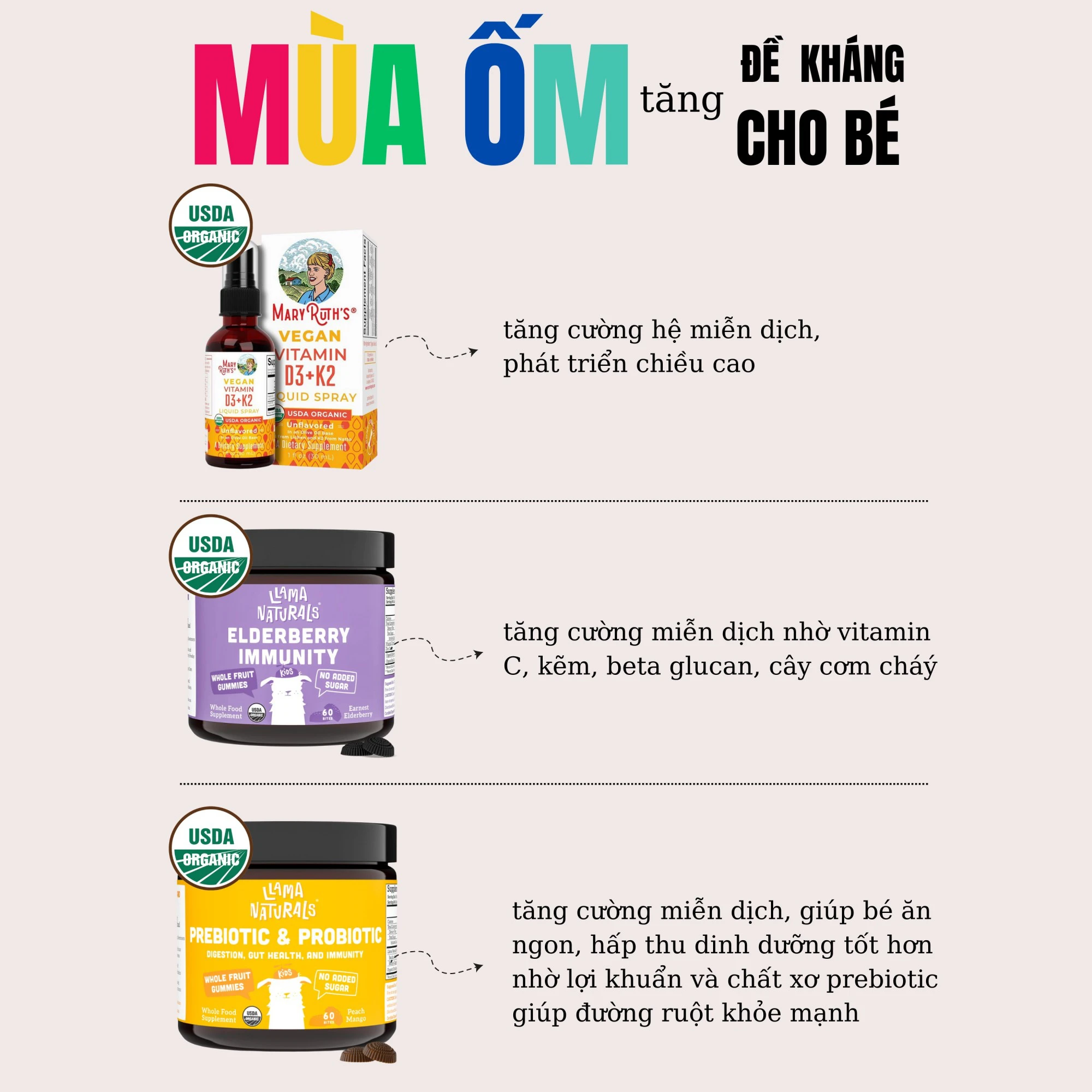 Tăng miễn dịch cho bé từ 2 tuổi với những sản phẩm hữu cơ tốt nhất. Bảo vệ bé khỏi ” mùa ốm” đặc biệt là các bé đi nhà trẻ.