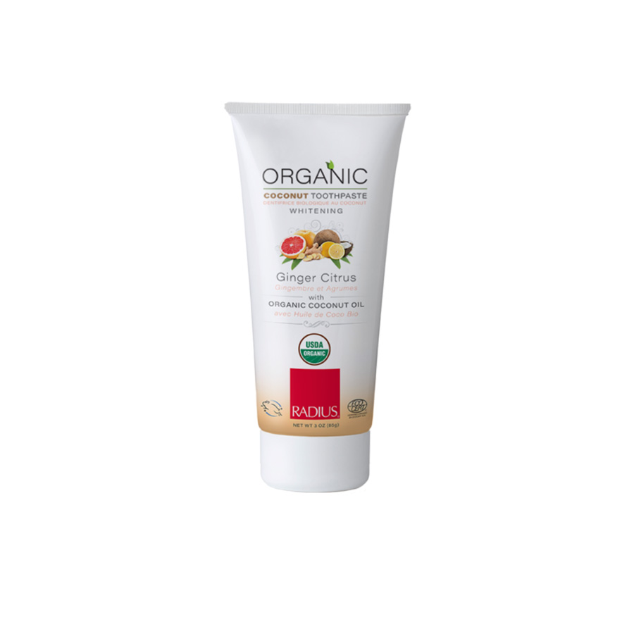 Tất cả các loại kem đánh răng của Radius đều bao gồm dầu dừa hữu cơ, một thành phần được sử dụng trong phương pháp điều trị răng miệng từ cổ xưa. Dầu dừa là thành phần làm sạch tự nhiên và giải độc miệng. Nó có tác dụng làm trắng, ngăn ngừa vi khuẩn, và có thể giúp làm giảm nguy cơ bệnh nướu răng và sâu răng.