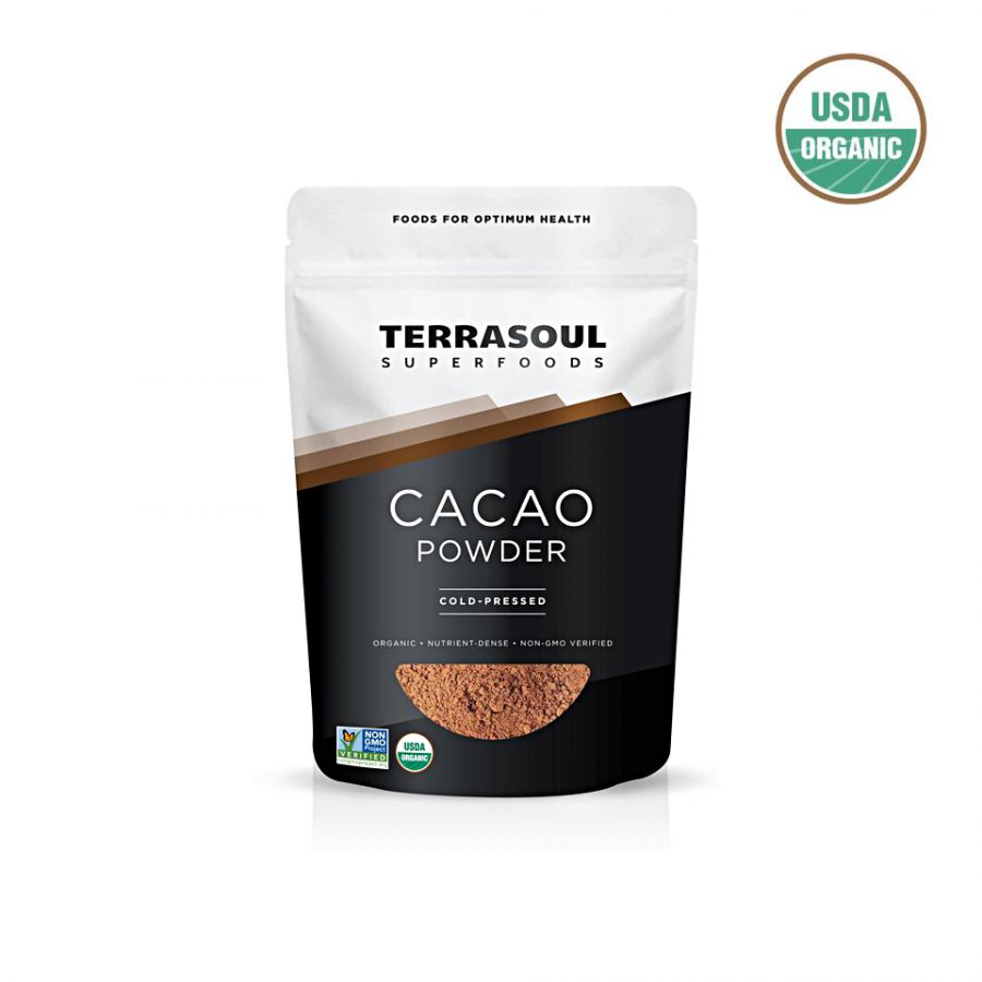 Được ca ngợi là “Thực phẩm của các vị thần”, cacao chứa hàm lượng magiê và chất chống oxy hóa cao nhất trong số các loại thực phẩm trên hành tinh. Sau khi ép lạnh hạt và bơ cacao (chất béo) được loại bỏ, phần quả còn lại sẽ trở thành bột cacao. Hạt cacao của Terrasoul được trồng dưới tán cây bóng mát trên vùng đất màu mỡ của Peru hoặc Ecuador. Để giữ được hương vị và lợi ích cho sức khỏe, hạt được thu hoạch cẩn thận, lên men, phơi nắng, ép lạnh và không bao giờ rang. Bột cacao nguyên chất 100% của Terrasoul sở hữu kết cấu mịn và hương vị đậm đà, là một giải pháp thay thế tốt cho sức khỏe so với cacao Hà Lan thông thường, đã qua chế biến.