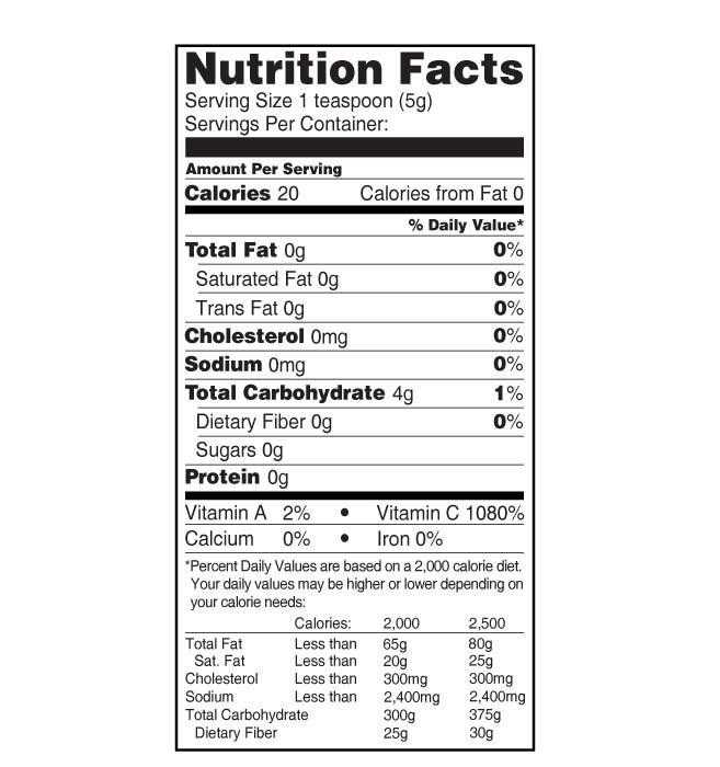 - Cung cấp khoảng hơn 1000% nhu cầu vitamin C tự nhiên hàng ngày trên 5g