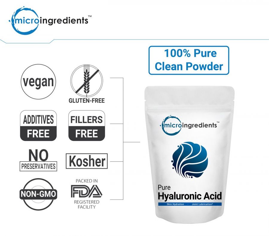 Bột Hyaluronic Acid tinh khiết Micro Ingredients cho sức khỏe của da & khớp & mắt