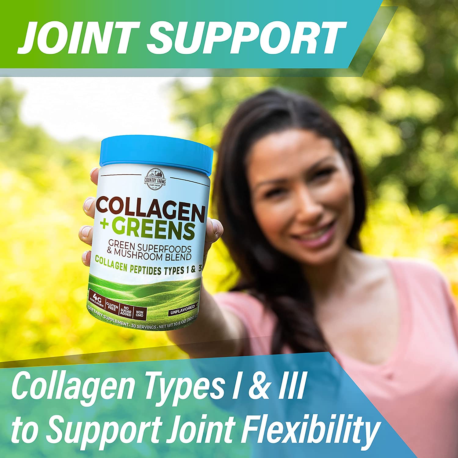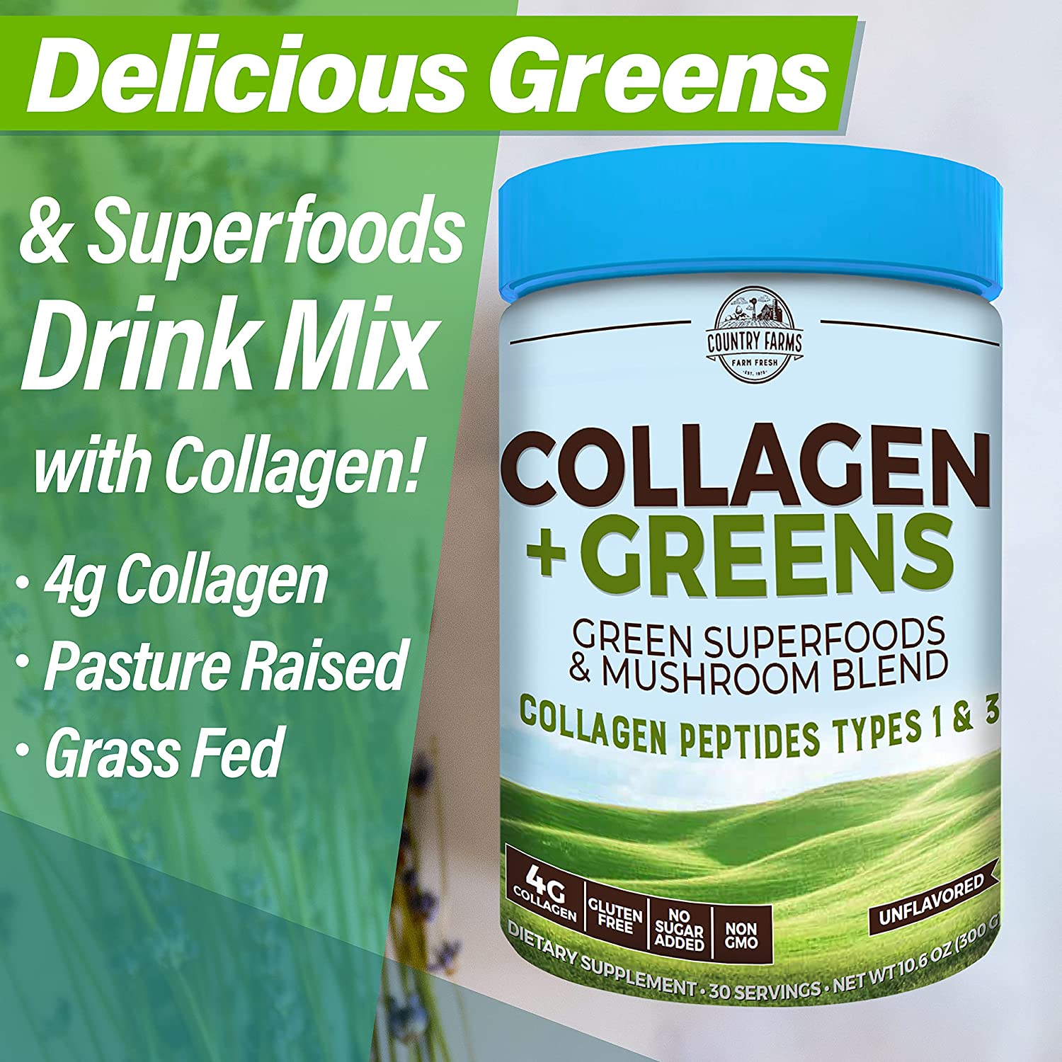Collagen thủy phân và 23 siêu thực phẩm Country Farms Collagen Greens