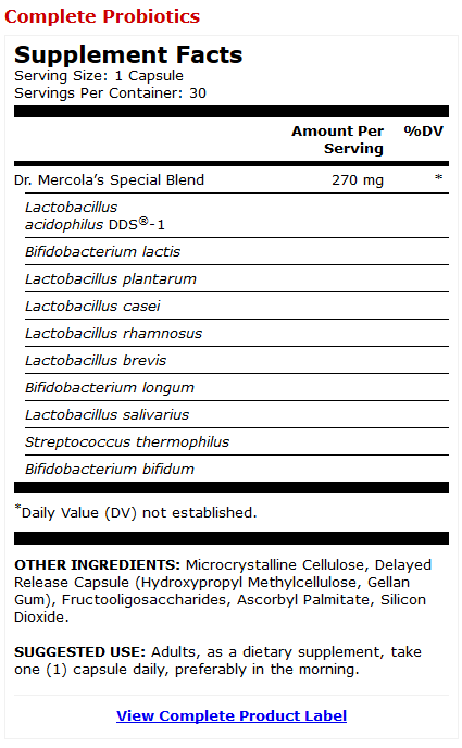 Công thức của Dr Mercola cũng chứa Fructooligosacarit (FOS) như một dạng prebiotic giúp vi khuẩn phát triển trong cơ thể bạn.