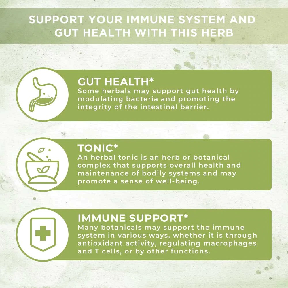 1 loại thảo mộc được sử dụng hàng ngàn năm cho sức khỏe đường ruột, giúp cải thiện các triệu chứng tiêu chả/đầy hơi/chướng bụng/ruột rò rỉ/đau bụng, hệ miễn dịch, kháng khuẩn, kháng nấm bao gồm nấm candida ở đường ruột/miệng, chống viêm, chống oxy hóa, giảm đau, giảm cân