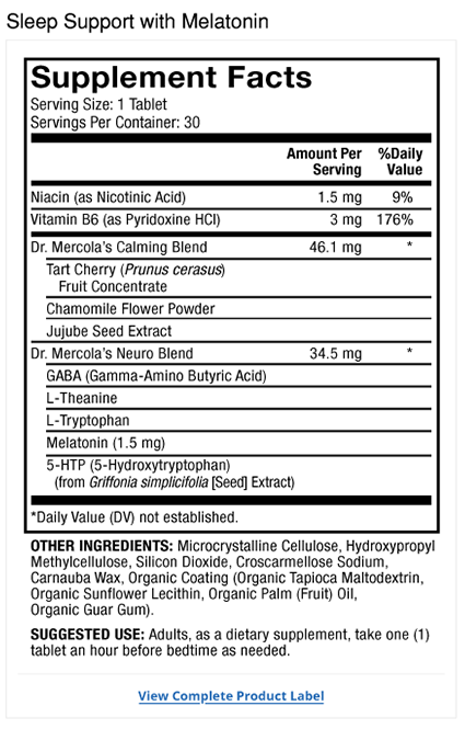 L-Tryptophan: 1 axit amin thiết yếu cần thiết cho việc sản xuất serotonin trong não, và tiền thân của melatonin, được chỉ ra trong các nghiên cứu lâm sàng để hỗ trợ giấc ngủ bình thường.
