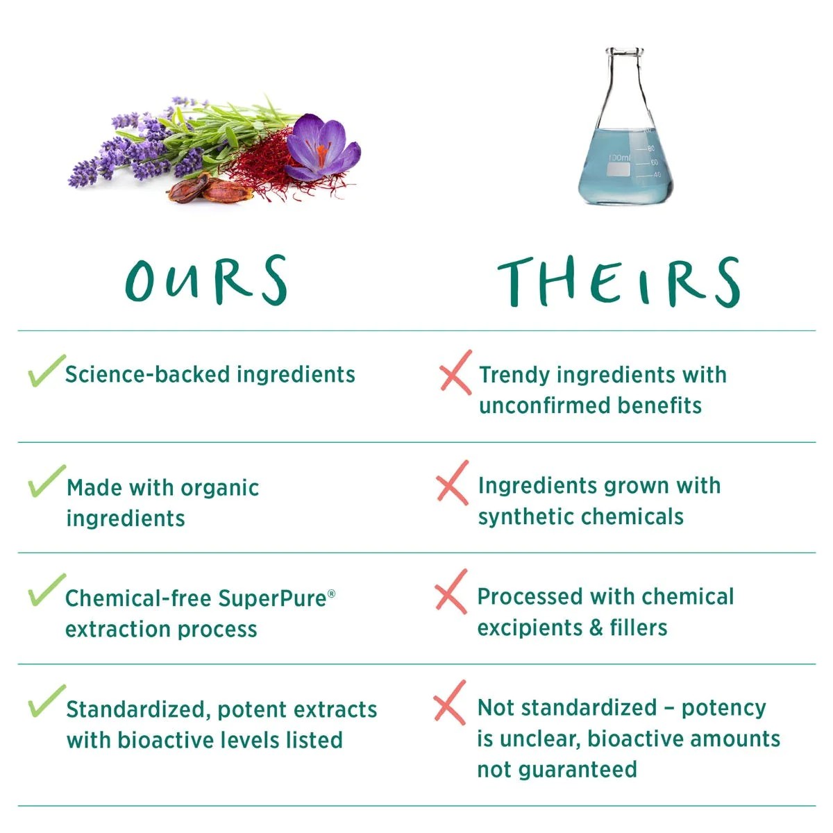 Một sự pha trộn tổng hợp của các loại thảo mộc được nghiên cứu kỹ lưỡng để cân bằng tâm trạng, Radiant Mood® là một công thức độc quyền chứa các chất chiết xuất SuperPure® như chiết xuất nghệ tây hữu cơ và hơn 5 thành phần cải thiện tâm trạng tự nhiên khác bao gồm: hoa oải hương, hoa hồng, hoa mộc lan, tía tô đất. dạ hợp bì, quả dành dành để hoạt động hiệp đồng trên hành trình hướng tới sức khỏe tinh thần và cảm xúc tốt hơn của bạn.