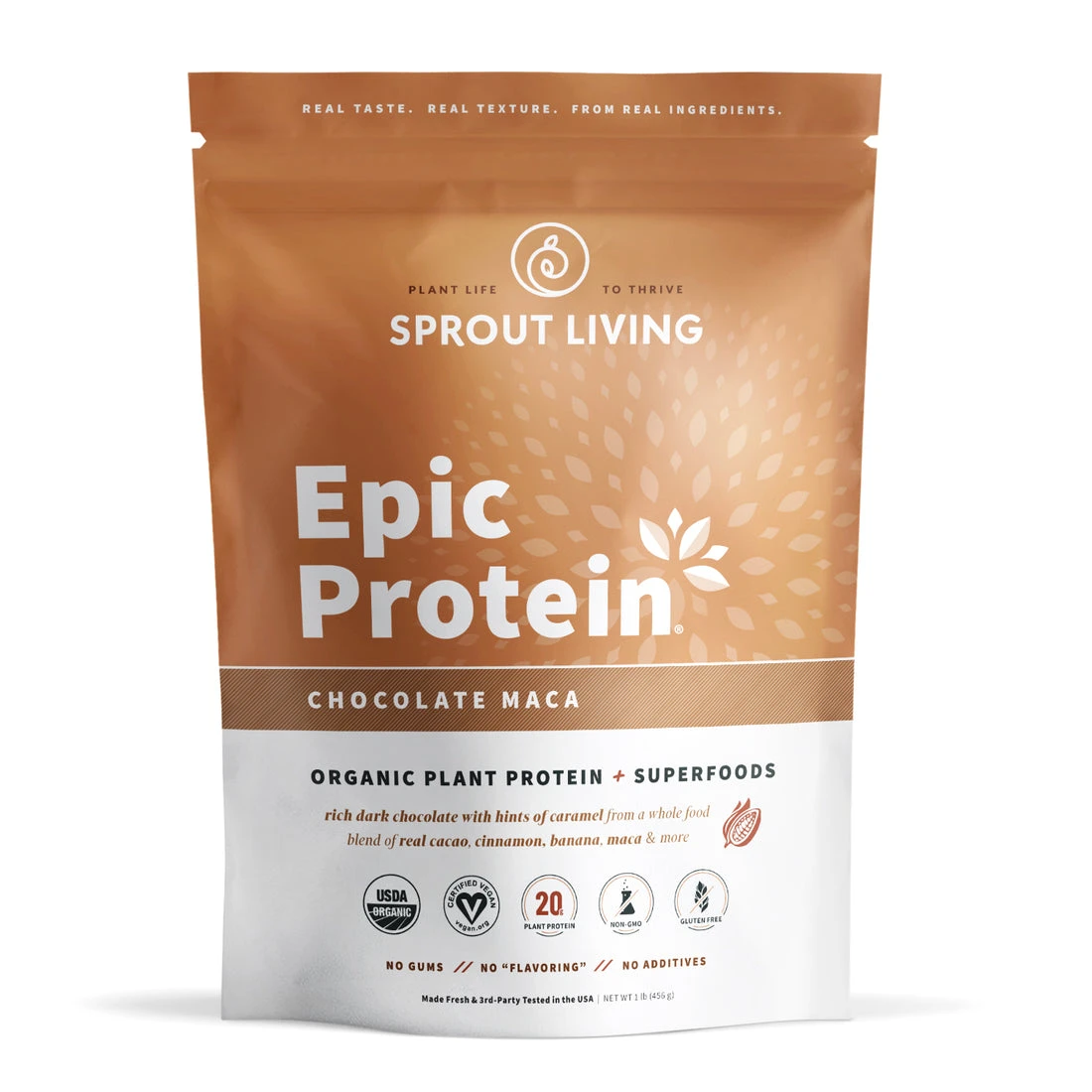 Protein thực vật & siêu thực phẩm Sprout Living, Epic Protein, Organic Plant Protein, Chocolate Maca