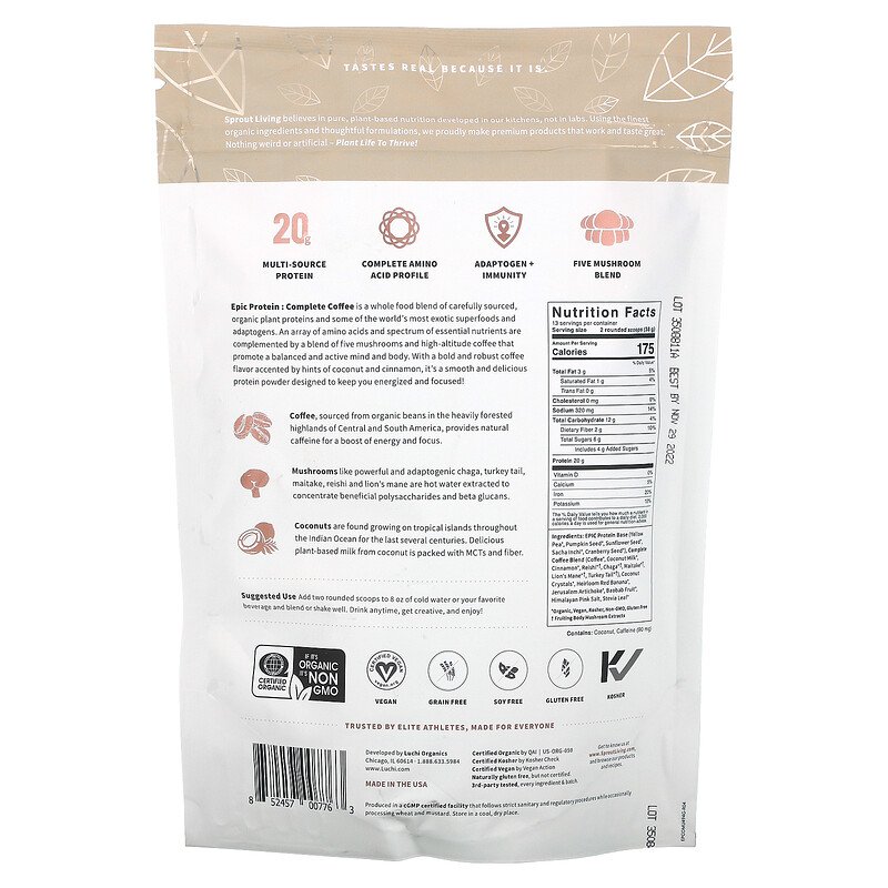 Protein thực vật & siêu thực phẩm Sprout Living Premium Superfood Protein, Complete Coffee