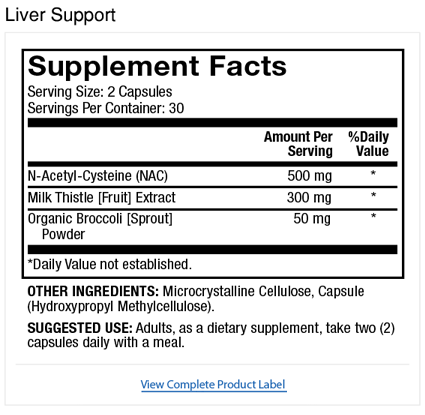 Viên uống Dr Mercola chứa N-Acetyl L-Cysteine (NAC), cây kế sữa và mầm bông cải xanh hữu cơ để giúp hỗ trợ chức năng gan khỏe mạnh và quá trình giải độc bình thường của cơ thể.