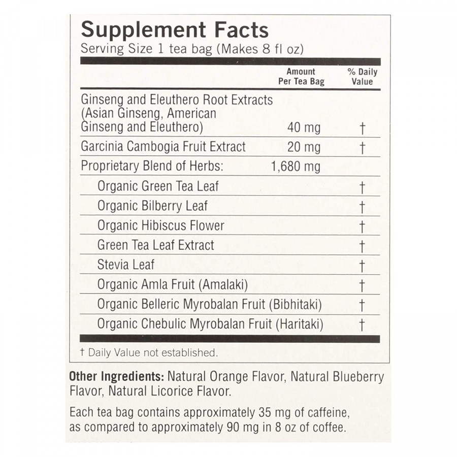 Yogi Green Tea Blueberry Slim Life kết hợp trà xanh và quả bứa với nhân sâm và sâm tây bá lợi để hỗ trợ quá trình giảm cân đồng thời cung cấp năng lượng để tăng sức chịu đựng của cơ thể trong quá trình này. Hương vị việt quất ngọt ngào và hibiscus tươi sáng làm cho trà Yogi Green Tea Blueberry Slim Life trở thành một bổ sung thơm ngon cho chương trình tập thể dục giảm cân và ăn kiêng cân bằng.