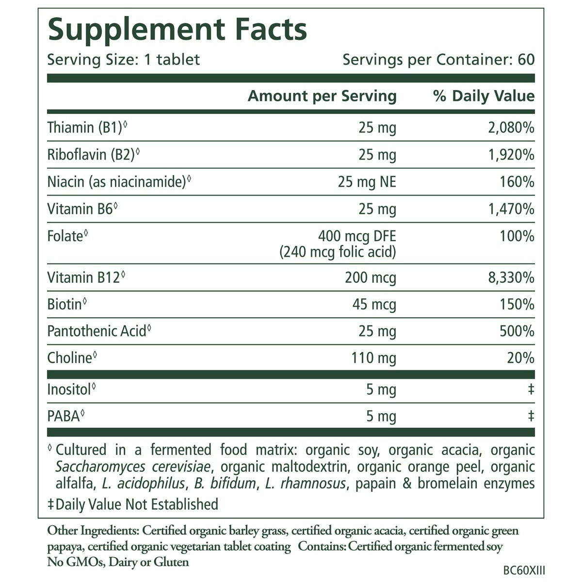 - Một phức hợp vitamin B mạnh mẽ, với vitamin B1, B2, B3, B5, B6, B7 B9, B12 rất nhẹ nhàng cho đường ruột của bạn
