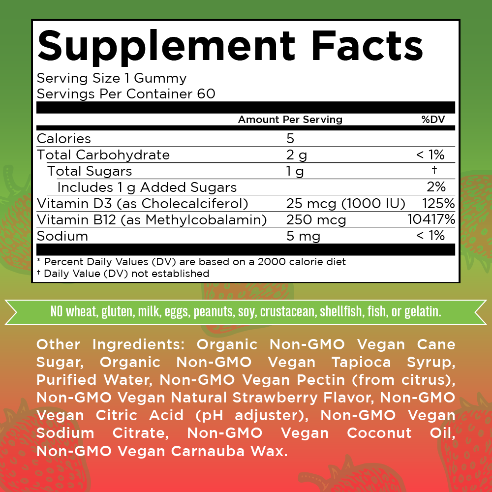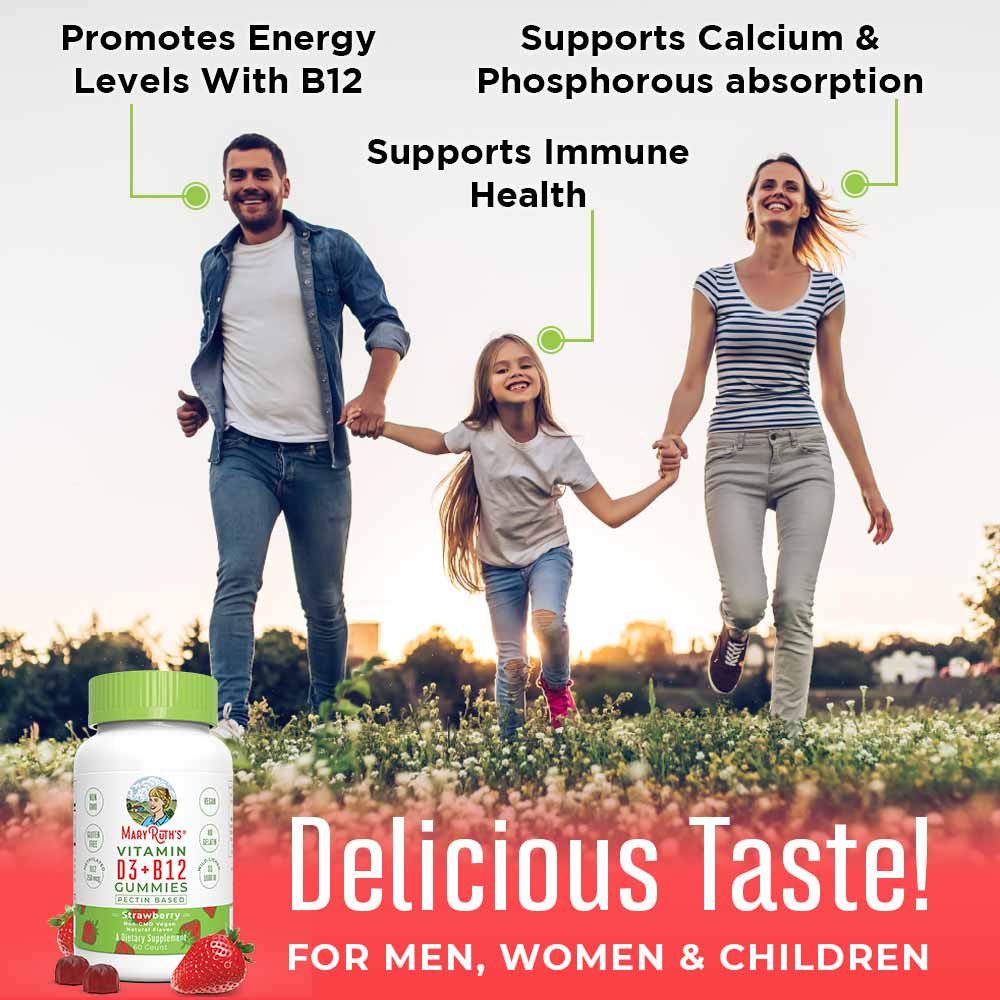 Vitamin D3-B12 Mary Ruth's dạng kẹo nhai, 60 viên vị dâu tây
