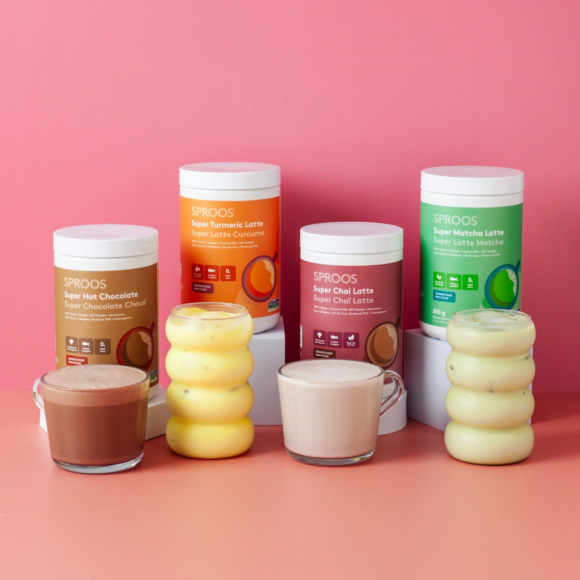 Sproos® Super Chai Latte là một hỗn hợp hoàn hảo của collagen thủy phân từ cá đánh bắt tự nhiên, bột MCT, sữa dừa, trà đen, gừng, quế, bạch đậu khấu, nhục đậu khấu, tiêu đen, nụ đinh hương và 4 loại nấm chaga, linh chi, lion’s mane, nấm vân chi. Chỉ cần 1 muỗng vào sữa nóng yêu thích là bạn đã có một cốc latte thơm ngon và tốt cho sức khỏe.