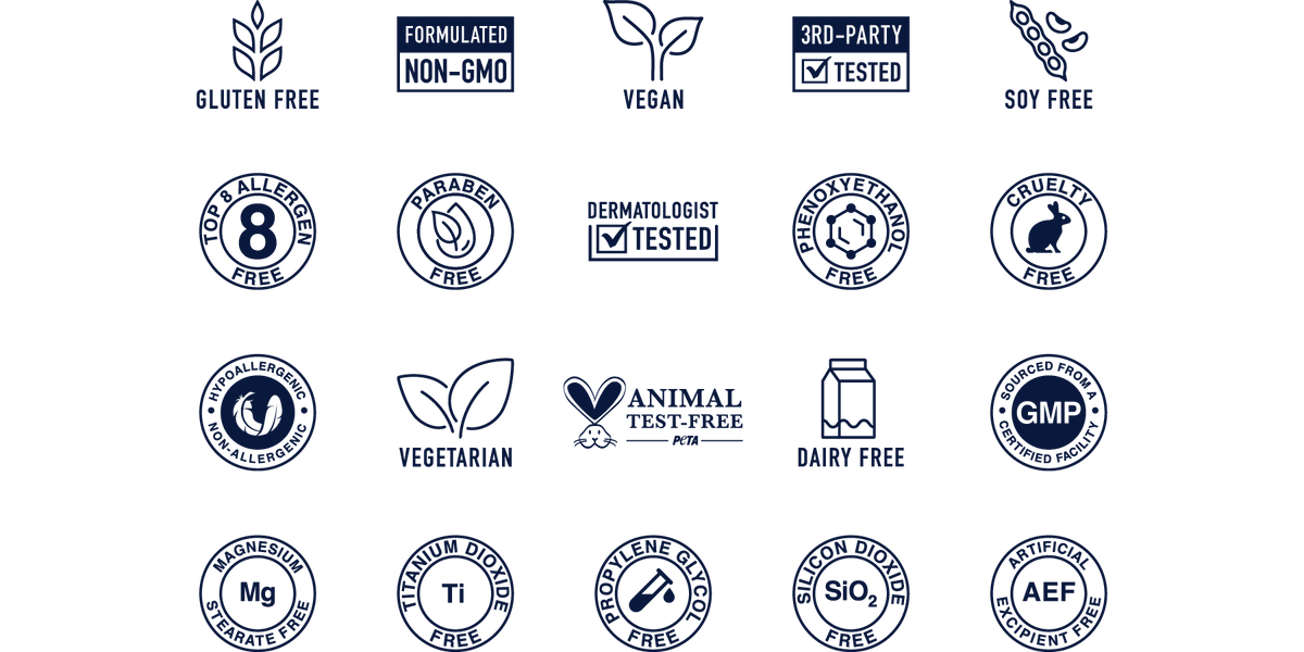 Chứng nhận dự án nhãn sạch, chứng nhận HALAL thuần chay, Không GMO, Không gluten, Không đậu nành, Không sữa, Không titanium dioxide, Không silicon dioxide, Không chứa 8 chất gây dị ứng hàng đầu.